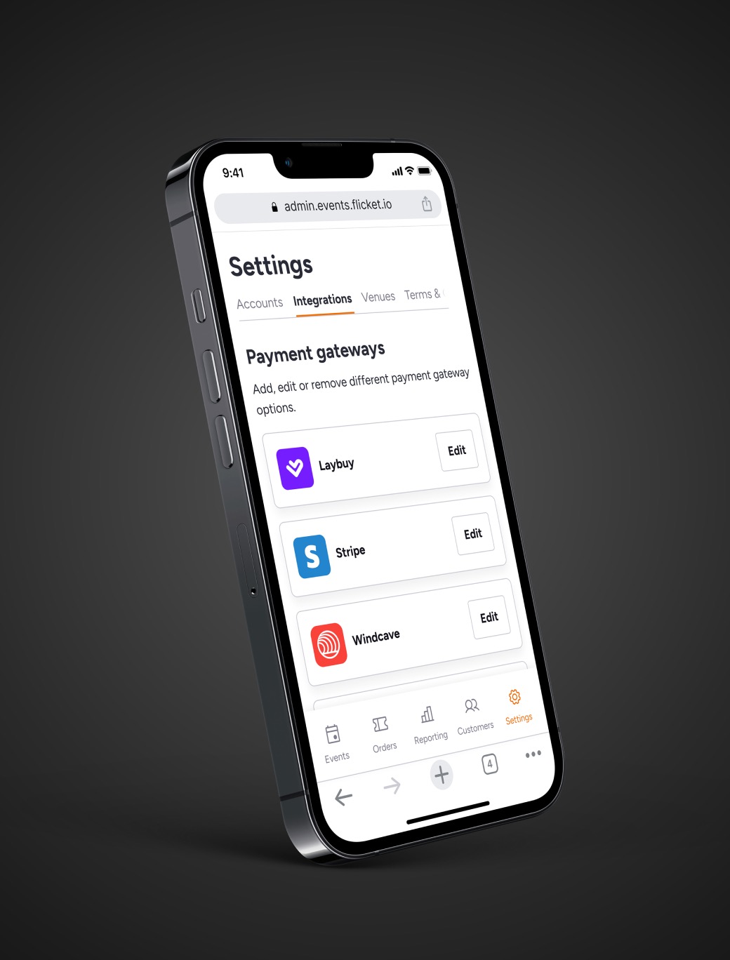Flicket enables partners to have direct access to ticketing funds, to ensure that as soon as a ticket is purchased the money ends via an integration via third party payment gateways. These include but are not limited to; Stripe, Pin Payments, Windcave, Laybuy and many others.